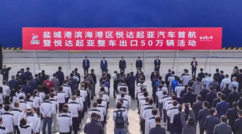 鹽城港濱海港區悅達起亞整車出口第50萬輛裝船起航儀式舉行